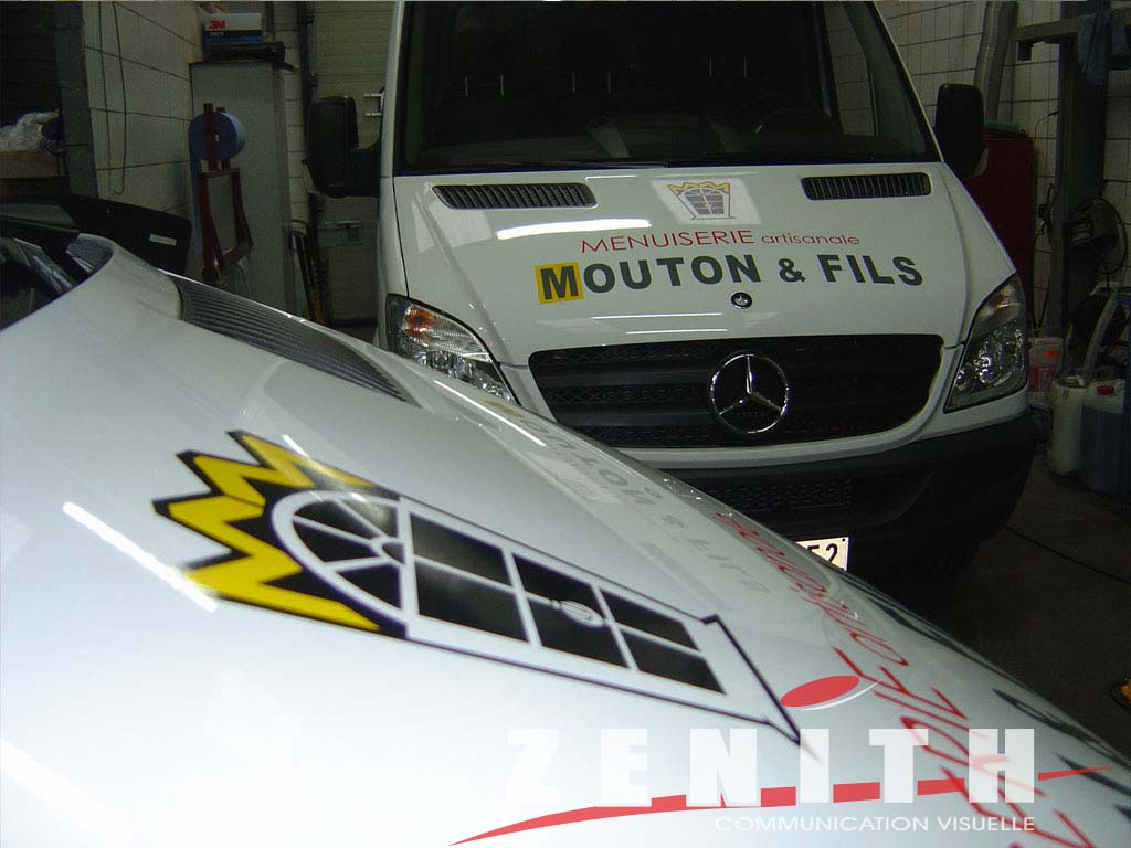 Menuiserie Mouton et Fils Quévy Havay Lettrage véhicule Zénith Communication visuelle