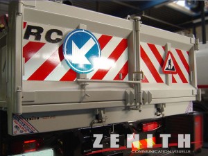 Arriere camion Camion bande réfléchissantes Lettrage véhicule Zénith Communication visuelle
